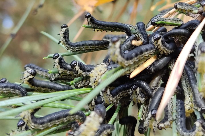 Pušinių pjūklelių masinio dauginimosi židinys Ignalinos regione žvalgomas specialistų (video)
