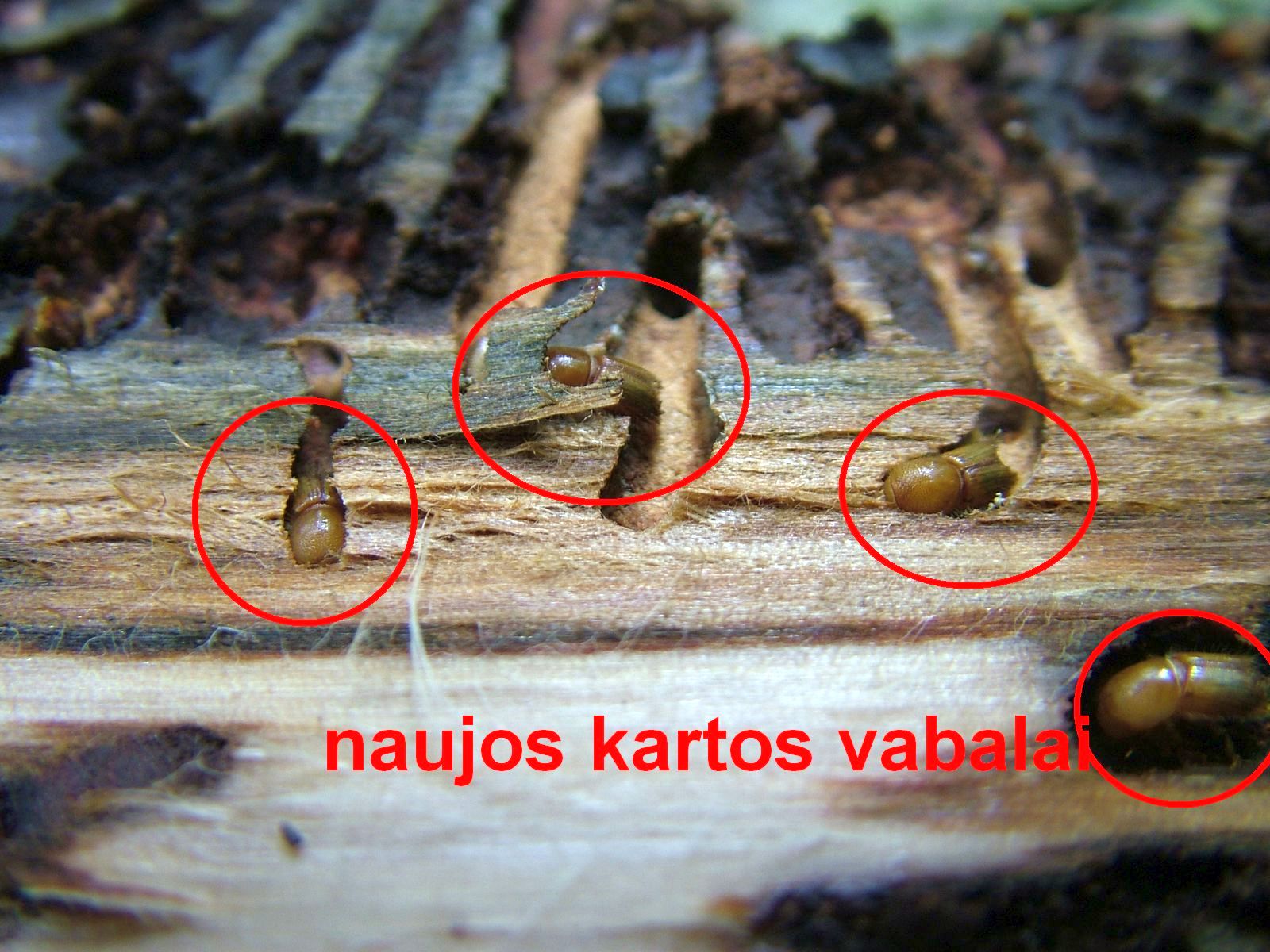 Liepos pradžioje po eglių žieve pastebėti pirmieji naujos kartos žievėgraužio tipografo vabalai. Tai gegužės mėnesį skraidžiusių, žalias eglių vėjavartas, vėjalaužas ir nusilpusius medžius apnikusių kenkėjų palikuonys.