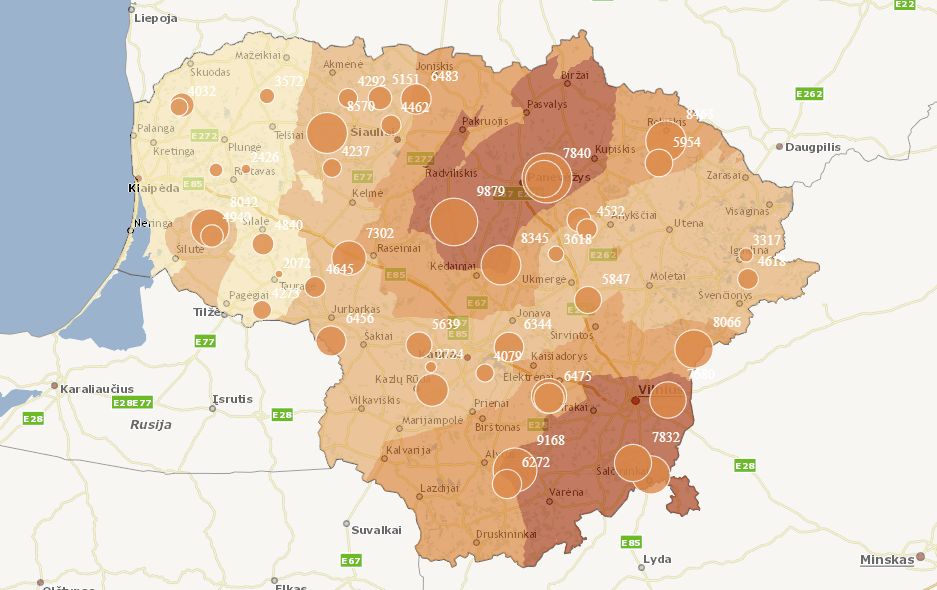 Žievėgraužio tipografo populiacijos gausumas Lietuvoje grafiškai pateikiamas čia.